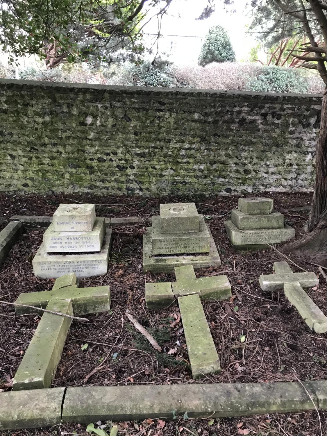 John is commemorated on the Arras Memorial Bay 5 and is also remembered on the headstone of his mother and father at Heene Cemetery EW Row 1 Plot 46. Inscription: In loving memory of John Harbottle born May 3rd, 1864, died October 3rd.1909. Also of Capt. John Harbottle 1st Batt. Leicestershire Regiment killed in action March 21st, 1918 aged 21 years. "The Lord knoweth them that are His" 2 Timothy ll.19 Helen Baird wife of John Harbottle died July 22nd 1923.