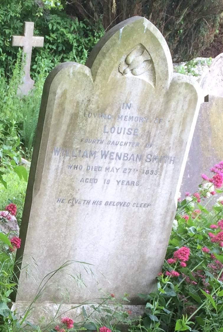 At a glanceAt a glanceSurname: Wenban SmithFirst name: LouiseOther Christian names: Gender: FemaleChildren: NoBurial number: 208Born: 0/0/1874Died: 27/05/1893Buried: 30/05/1893Occupation: Private MeansDistinction: Typhoid VictimHeene Hallmark: NoCommonwealth War Grave: No The GraveThe graveCemetery area: EBCemetery row: 5Cemetery plot: 36what3words location: https://what3words.com/this.words.seasonBurial remains: Unknown The headstoneHeadstone inscription: In loving memory of Louise, fourth daughter of William Wenban Smith who died May 27th 1893 aged 19years. He giveth his beloved sleep Life storyLife storyLouise was born to William and Elizabeth Wenban Smith. In 1881 she was living with her parents and siblings at Victoria House (next to the Norfolk Hotel) Worthing, she is attending school. In 1883 her Mother died, and by 1891 she is living with her Father at Remenham House Victoria Road Worthing. In 1893 a Typhoid epidemic (Enteric Fever) hit Worthing and Louise contracted the disease. She died on 27th May 1893 at home. Sadly her Father and her Siblings were unable to attend the funeral as they too were ill at home, presumably also with Typhoid.Burial researcher: Jackie Rooney Further informationBirthDate born: 00/00/1874 DeathDeath (details)Date of death: 27/05/1893Age (at time of death): 19Cause of death: Enteric Fever 22 days; Septicaemia;Address at time of death: Remenham House, Victoria Road, Worthing, Sussex, England ObituaryWorthing Gazette 31st May 1893 Sad Deaths - … Another case is that of Miss Louise Smith, third daughter of Mr W.W. Smith, who has long been associated with the public life of the town. Miss Smith, who was only nineteen years of age, died a few days since and was buried at Heene yesterday, a peculiar feature of sadness being found in the fact that the father and brothers and sisters of the deceased young lady were lying ill at home and unable to follow her remains to the grave...... Census and miscellaneous informationCensus information1881 census: Living at Victoria House, next to the Norfolk Hotel, Worthing - William and Elizabeth arewith Emily 11yrs, Louisa 7 yrs, Willliam E 5 yrs, Frederick W 3 yrs and Ethel 1yr and a general servant Elizabeth Tulet 20yrs and a nurse Harriet Banfield 13yrs. William is a builders merchant employing 37 men and 4 boys1891 census: Living at 'Remenlan' House, Victoria Road, Worthing - They are with Emily 21yrs, Louise 17yrs, William E 15yrs, Ethel K 11yrs Edith Hellen 9yrs and a general servant Rosa Wheatland 22yrs Previous Random burial Next