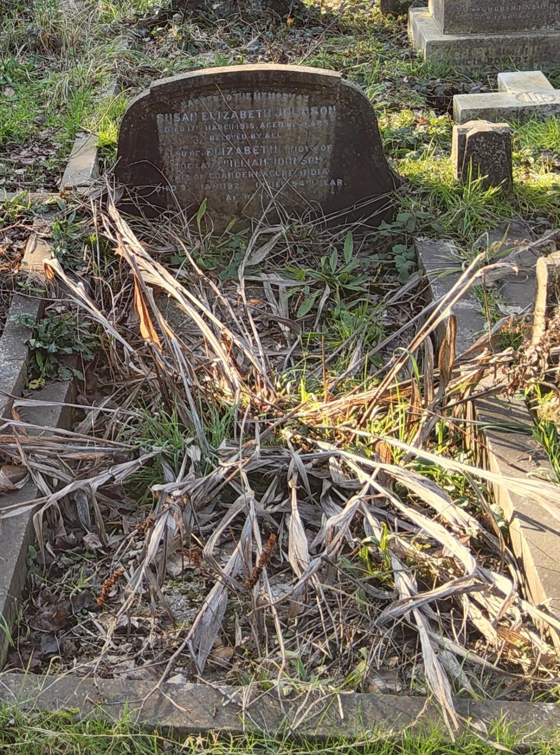 At a glanceAt a glanceSurname: JohnsonFirst name: SusanOther Christian names: Elizabeth Gender: FemaleChildren: UnknownBurial number: 778Born: 20/7/1833Died: 17/03/1915Buried: 22/03/1915Occupation: Private meansHeene Hallmark: NoCommonwealth War Grave: No The GraveThe graveCemetery area: SWSCemetery row: 1Cemetery plot: 3what3words location: https://what3words.com/amount.coats.cabinBurial remains: Unknown The headstoneEndowed grave: NoHeadstone inscription: Sacred to the memory of Susan Elizabeth Johnson died 17th March 1915 aged 81 years "Beloved by all" Also of Elizabeth widow of the late William Johnson late of Chandernacore, India died 8th Jan 1927 in her 94th year "At rest" Grave location map Life storyLife storySusan was born in Bishops Stortford, Herts, the daughter of Joseph Thomas Johnson and his wife Susan Alicia. She was baptised as Elizabeth Susan at the Wesleyan Chapel, Paternoster Row, London on 26th October 1833. Her father was a linen draper. Susan was sent to a private school in Hornsey. By 1861, the family were living in Windsor. It is possible that she met her friend Elizabeth Johnson ( a widow, no relation) in India before 1871. As they were both called Elizabeth, the younger woman used the name Susan from now on. The two women lived together in Windsor before moving to Worthing by 1891. They leased 2 Southview Terrace in Rowlands Road. Susan died on 17th March 1915. Probate was granted on 1st June to Reverend Douglas Stanley Johnson clerk canon of Manchester Cathedral and Mildred Engall Johnson spinster. Effects £1854 9s 8d. Susan's friend Elizabeth died in 1927 and was also buried at Heene.Burial researcher: Carol Sullivan Further informationBirthDate born: 20/07/1833 DeathDeath (details)Date of death: 17/03/1915Age (at time of death): 81Cause of death: UnknownAddress at time of death: 2 Rowlands Road, Worthing, Sussex, England Personal effectsProbate pounds: £1,854 Census and miscellaneous informationCensus information1841 census: Hornsey Lane, Hornsey. Elizabeth aged 7, pupil at school run by Louisa Murfill.1851 census: 10 Park Street, New Windsor, Berks. Elizabeth aged 17, visitor, niece of John Carey, retired silk mercer and family.1861 census: 14 Trinity Place, Clewer, Windsor, Berks. Joseph T aged 55, retired linen draper. Susan A aged 57. Elizabeth S aged 27. Plus 1 servant.1871 census: No trace. Possibly in India.1881 census: Cedar Cottage, New Windsor, Berks. Elizabeth Johnson aged 48, widow, income from dividends. Susan E aged 47, friend, no occupation. Plus 1 servant.1891 census: 2 Southview Terrace, Rowlands Road, Worthing. Elizabeth aged 58, widow, own means. Susan E aged 57, own means. Plus 1 servant.1901 census: 2 Southview Terrace, Rowlands Road, Worthing. Elizabeth aged 68, widow, own means. Susan E aged 67, boarder, own means. Plus 1 servant.1911 census: 2 Southview Terrace, Rowlands Road, Worthing. Elizabeth aged 78, widow, own means. Susan Elizabeth aged 77, resident, friend. Plus 1 servant. Previous Random burial Next