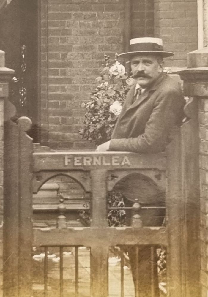 A postcard produced to celebrate the coronation of George V and Queen Mary in 1911. These two were neighbours in Belsize Road and they are both buried at Heene. The one leaning on the gate at Akerdene is William Iredale Akers and the other by the Fernlea gate is William Paine. FoHC Acknowledge the Geoffrey Godden Collection and Worthing Library Service, for the permission to publish these photographs.