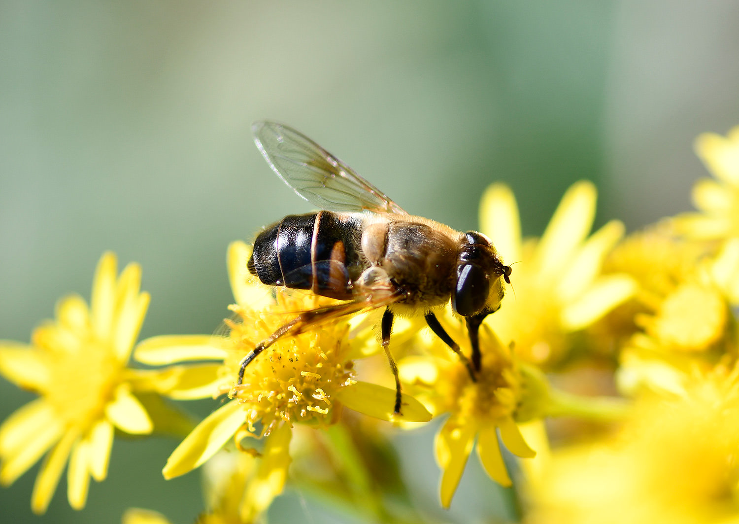 The Common Drone Fly looks like a bee and has a name that suggests that it's a fly. However, it is a hoverfly! It resembles a bee drone (hence the name). This mimicry helps to protect it from predators. Like bees, these insects are pollinators.