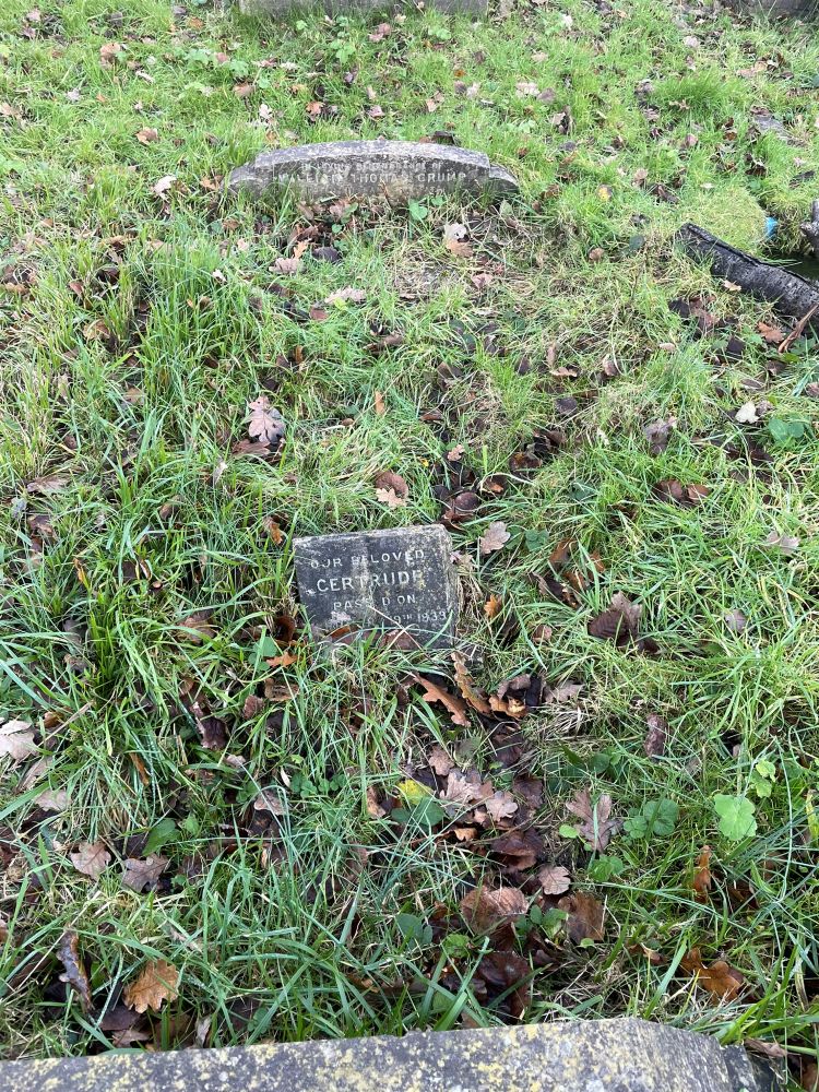 At a glanceAt a glanceSurname: CrumpFirst name: GertrudeOther Christian names: Mabel Gender: FemaleChildren: NoBurial number: 1691Born: 0/7/1887Died: 19/02/1939Buried: 22/02/1939Occupation: Mother's Help.Heene Hallmark: NoCommonwealth War Grave: No The GraveThe graveCemetery area: SESCemetery row: 6Cemetery plot: 22what3words location: https://what3words.com/unit.slave.nobleBurial remains: Unknown The headstoneEndowed grave: NoHeadstone inscription: In loving remembrance of William Thomas Crump devoted husband and father passed beyond 5th August 1917 aged 66 "How sweet the name of Jesus sounds" Also Louisa Ann wife of the above our beloved Gertrude passed on February 19th 1939 Grave location map Life storyLife storyGertrude Mabel Crump was born in July 1887 in Camberwell, London. She was the daughter of William Thomas Crump, 35yrs, Commercial Traveller, Confectionery, and Louisa Ann, 26yrs, nee Dale; she had 3 siblings, William John b.1881, Dorothy b.1882, and Gladys b.1890. Her father's occupation as commercial traveller meant that the family moved from West Ham, Essex to Hastings, Sussex, then back to London where in 1911, Gertrude was employed as a mother's help in Forest Hill, for the Hallifax family. Gertrude never married, she joined her parents in Worthing at some point after 1911. After William died in 1917, his widow and daughter moved to 9 Browning Road. By the time of her death Gladys and her mother were living at 64 St Lawrence Avenue, Worthing, the home of Percival Fells and his wife Dorothy nee Crump. Gertrude died on 19th February 1939. No probate.Burial researcher: Maggi Martin Further informationBirthDate born: 00/07/1887 DeathDeath (details)Date of death: 19/02/1939Age (at time of death): 52Cause of death: UnknownAddress at time of death: 64 St Lawrence Avenue, Worthing, Sussex, England Census and miscellaneous informationCensus information1891 census: Henslowe Road, Camberwell, London. William John, 10yrs, son, daughters, Dorothy L. 8yrs, Gertrude M. 5yrs, Gladys B. under 1yr, caretaker/housekeeper, Hannah Heath, 56yrs.1901 census: 6, Priory Avenue, Hastings, Sussex. William T. Crump, 50yrs, Commercial Traveller, Confectionery, wife, Louisa Ann, 41yrs, son, William John, 20yrs, Chef, daughters, Dorothy, 18yrs, Gertrude, 14yrs, Gladys, 10yrs1911 census: 20 Moreton Road, Forest Hill. Gertrude aged 24, mother's help in household of Charles Temple Halifax, bag manufacturer and family.1921 census: Living at 9, Browning Road, Worthing, Sussex. Louisa A Crump Head Female 1859 Home Duties - Gertrude Mabel Crump Daughter Female 1886 35 Home Duties - Gladys Beatrice Crump Daughter Female 1890 30 Home Duties - Ethel Hutchings Boarder Female 1886 34 None - Edwin Frank Shrubsall Visitor Male 1859 62 Civil Servant, (Retired) Previous Random burial Next