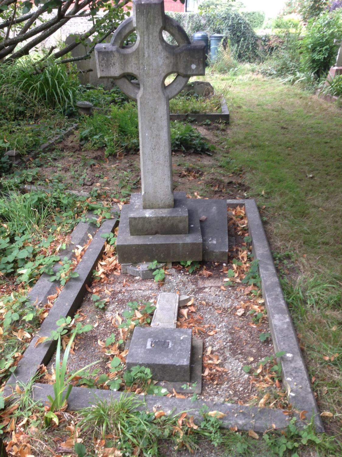 Gravestone cross of John Gresson laid down