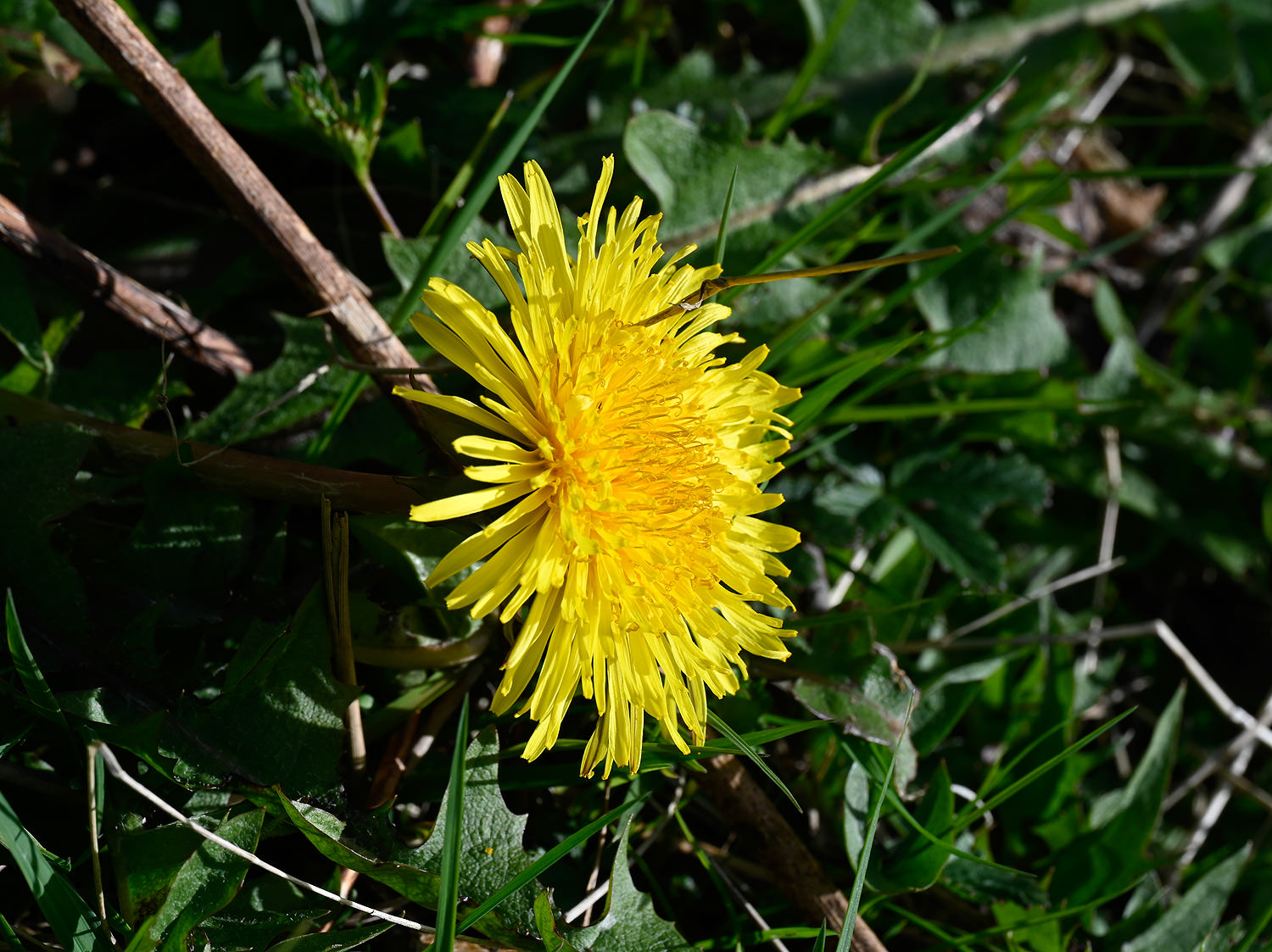 This native species has outer florets grey-violet beneath, opening in April, but often any time, with stems issuing a milky juice.  There are many microspecies within eight principal subspecies.  The number of puffs needed to blow the filaments from the dandelion clock is supposed to tell the time.